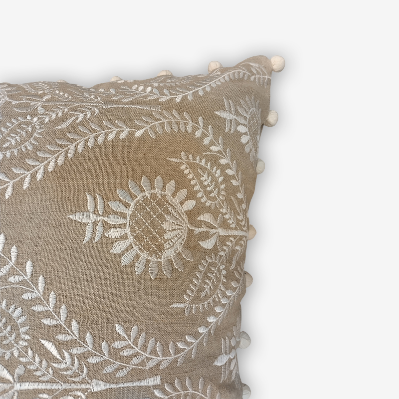 FRONT & BACK 100% LINEN, SATIN STITCH EMBROIDERY, 40 POM POM