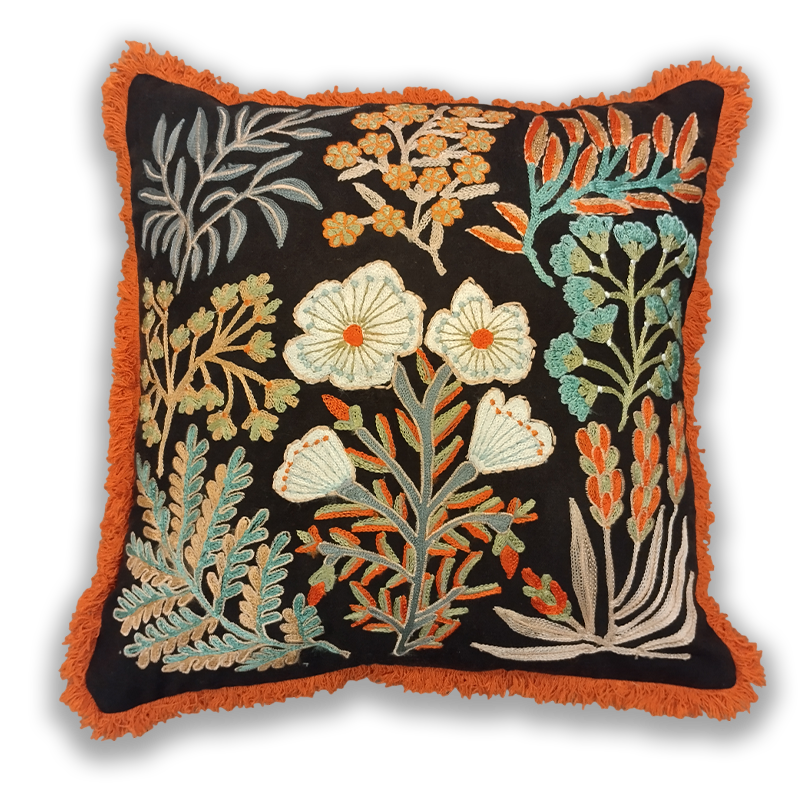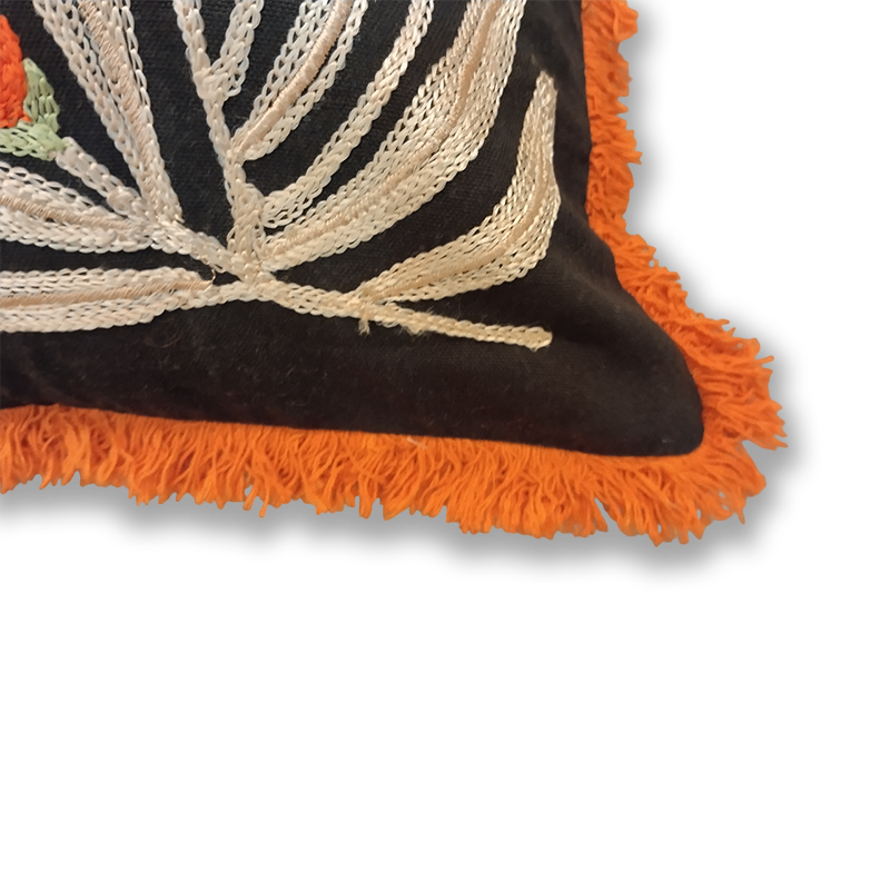 FRONT & BACK 100% COTTON DUCK, RAYON CREWEL EMBROIDERY AND MACHINE SATIN STITCH EMBROIDERY, WITH METAL ZIPPER YKK