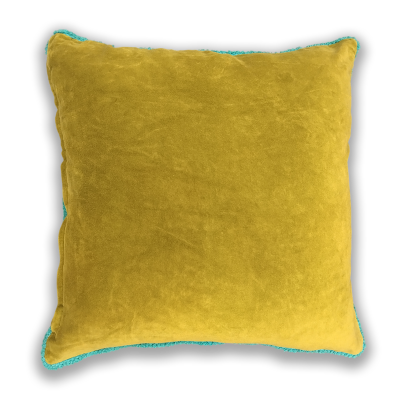 FRONT & BACK 100% COTTON VELVET, MACHINE SATIN STITCH EMBROIDERY, CHANGE PIPING TO LOOPY LACE LIKE #33902, LOOPY LACE IN TEAL COLOUR LIKE PHOTO, WITH METAL ZIPPER YKK