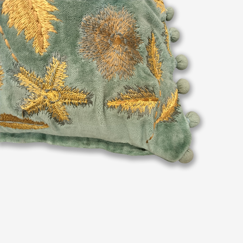 FRONT & BACK 100% COTTON VELVET, WITH MACHINE EMBROIDERY, 22 COTTON SHEETING HAND MADE POM POM ON TWO SIDE