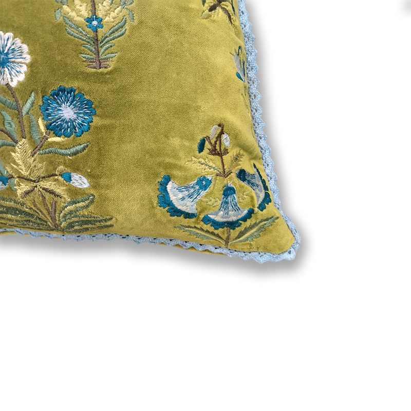 FRONT & BACK 100% COTTON VELVET, MACHINE SATIN STITCH EMBROIDERY, WITH METAL ZIPPER YKK